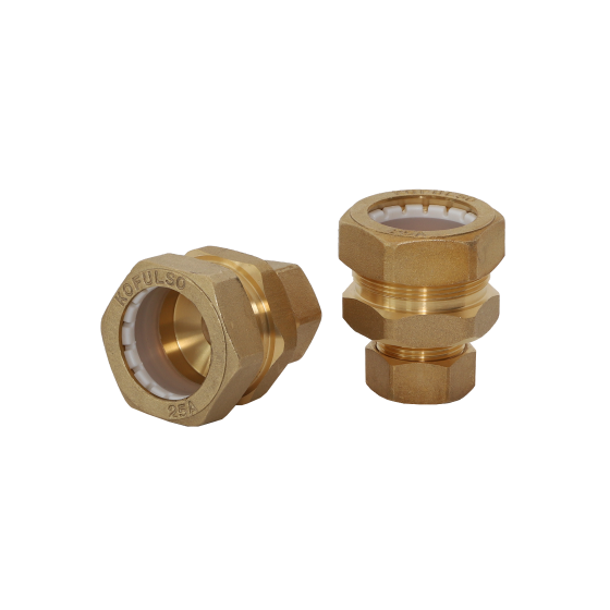 Муфта латунная для гофрированной трубы из нержавеющей стали "труба-труба" - это надёжное соединительное решение для гофрированных труб из нержавейки. Муфта предназначена для прямого соединения гофрированных труб между собой в системах водоснабжения.
