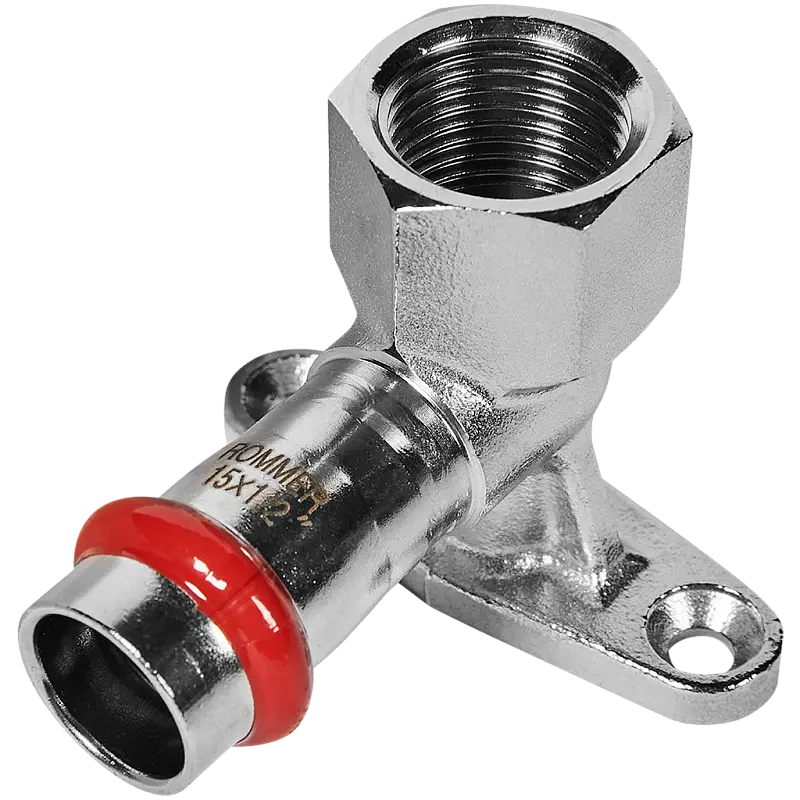 Угольник настенный с креплением ROMMER из качественной нержавеющей стали AISI 304 широко используется в отопительных и водонагревательных системах для обеспечения надежных и герметичных соединений, а также для удобного крепления оборудования на стене.
